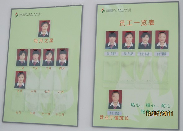 落实举措,亮化窗口。按照创建和基层窗口规范化建设标准,集团公司着重抓好窗口建设、提升服务质量。在服务环境上,做到环境洁化、序化、绿化、亮化和美化,明确划分功能区域,提升营业大厅硬件设施配置,增加服务透明度。在服务品质上,严格落实首问责任制及承诺制服务,开展微笑服务,实施亮身份、亮形象、亮承诺;在用户密集的天目、朝晖、东园、江虹路等营业厅实现“全年无休”及人性化服务;强化“四统一”推行5S管理,为燃气用户提供更为贴心的星级服务。在台帐建设上,对2009年~2011年用户接待台账和来信、来访处理台账进行规范,规范台账记录,落实专人负责和保管。按照《杭州市公共服务窗口服务评价制实施办法》,集团公司组织各窗口单位对2010年12月安装的服务评价系统进行自查,制定了《杭州市燃气(集团)有限公司对外窗口服务评价系统实施办法(试行)》,健全服务评价系统考核办法。