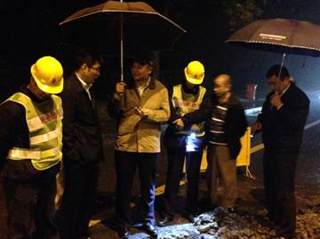 11月11日晚,集团公司党委书记、董事长胥东实地查看了破损点修复现场,并对施工人员进行了慰问,指出:要合理安排施工计划,按时完成破损点修复任务;同时要在确保工作进度的基础上,保障施工人员作业安全、保障职工正常休息时间。