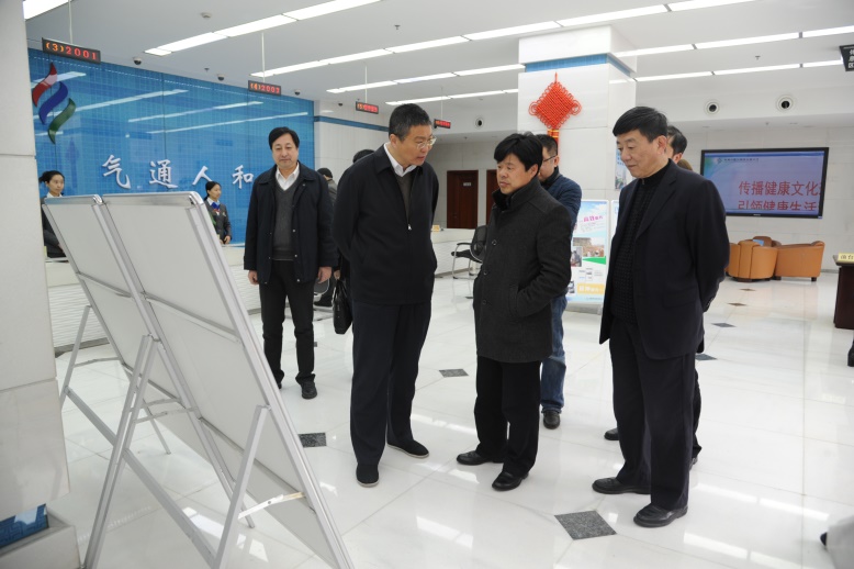 调研组一行首先参观了天目营业大厅,通过胥书记的深入讲解和展板图文并茂的展示,调研组对集团服务用户“五走进”、六大特色服务及党员先锋工程建设等方面所付出的努力和取得的成绩给予高度肯定。