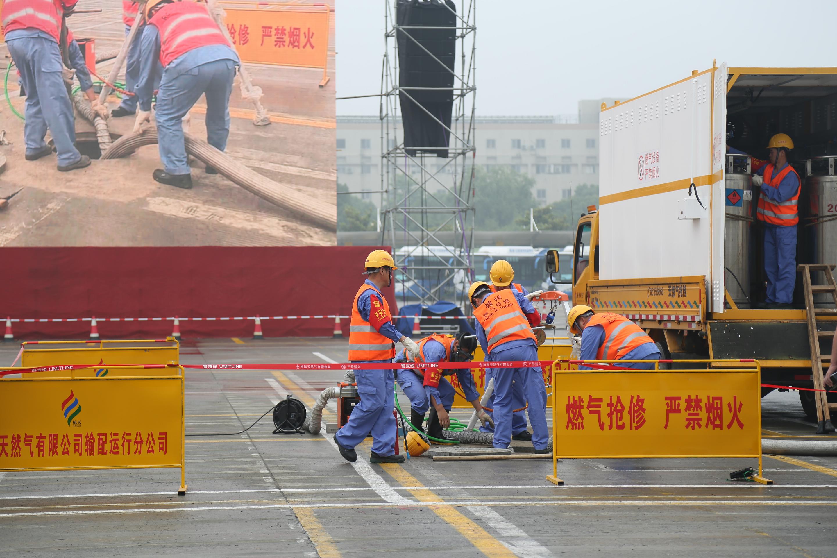 演习环节情节逼真、紧张有序,模拟的是重点保障区域内的一家非重点用户发生了液化气泄漏及燃爆,泄漏的液化气集聚在下水井内,因燃爆导致下水井附近的天然气阀门井内膨胀节发生变形。为了保障该天然气管道供应的重点场所及用户安全稳定不间断用气,在修复膨胀节的过程中,通过应急气源撬对用户临时供气。早在4月份,银河官网