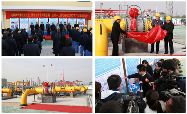 举行杭州市天然气利用工程江东门站建成试运行发布会。省发改委能源处卢飞燕、市发改委重点处金灵志、市城投集团副总经理吴桂才、西气东输二号线管理处副处长张德庆、省天然气公司市场部副经理缪圣陶、用户代表金柏堂、银河官网