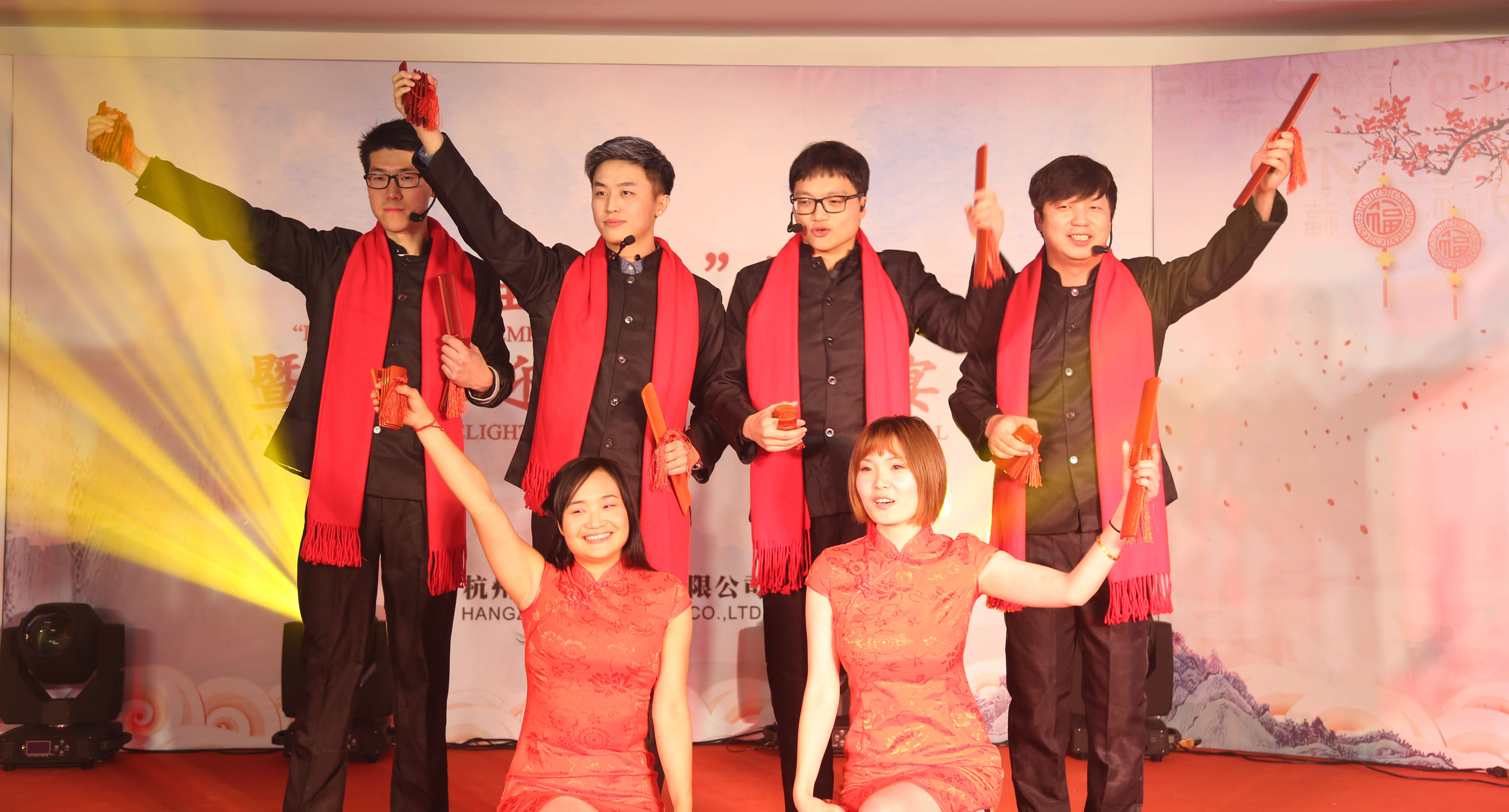 集团党委副书记、总经理王东宣读了表彰文件,厉强等20位同志获得了2017年度集团“双十佳员工”。集团党委书记、董事长芦俊率集团领导班子为受表彰员工颁奖并向全体员工致以新年祝福。8家基层单位党支部“自创自编自导”的节目亮相百家宴,展现银河 人爱岗敬业的精神风貌,现场气氛激情热烈。桐庐银河 《工装秀》,完美地展现了银河 人的职业风采;杭天服务发展公司小品《让家更温暖》,真情诠释演绎了银河 优家如何把温暖送到千家万户的情景;;钱江燃气创意舞蹈《纤夫的爱》,奇特的造型让人喜笑颜开;杭天高压储配分公司诗朗诵《我是一片叶》,把银河 比喻成一棵伟岸参天的树,而我们就是深深依恋着大树的叶子;杭天滨江分公司、能源公司联合出演的乐器弹唱《小手拉大手》,轻快的旋律,呆萌的燃气宝宝,寓意四十四年的银河 路我们携手同行,同舟共济;杭天管网输配公司小品《争功》,表达了不同岗位的员工都是企业发展不可或缺的一部分;工程公司演绎了《梁祝》和《红楼梦》的经典唱段,为观众带来一场柔美的视听享受;多个支部联合出演的压轴节目《共筑银河 梦》,用朗朗上口的快板韵律道出了2017年取得的成绩和对未来的展望。最后,联欢会在《相亲相爱》的歌声中结束。随后的百家宴,40位来自于五湖四海的员工为大家带来了40道各具风味家乡菜,为活动增添了浓浓的年味。