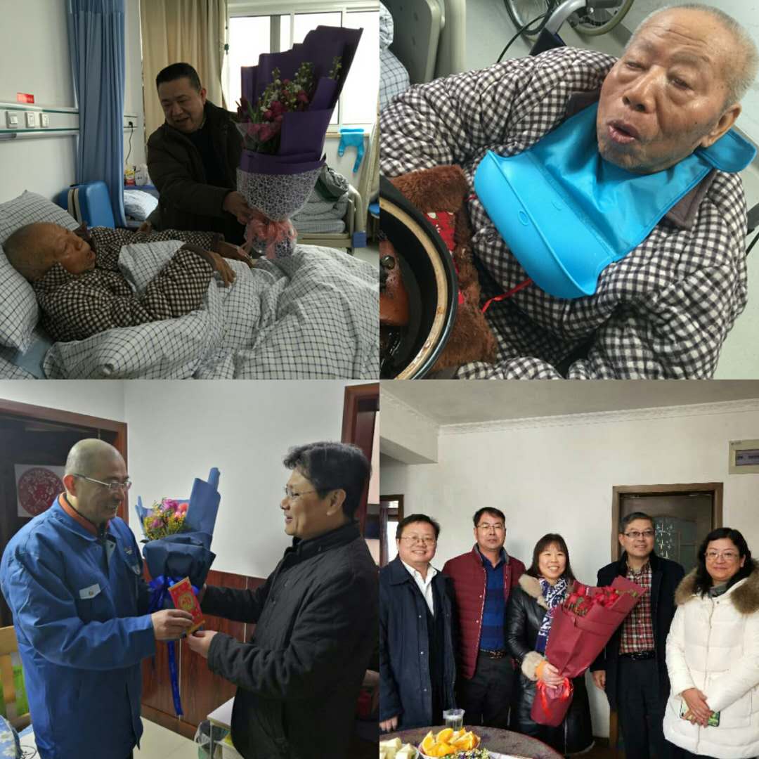 集团党委书记、董事长芦俊带队,看望住院休养的老领导许家福,详细了解了许老的身体状况,祝愿许老健康长寿、新春快乐。次日上午,党群工作部按照芦董的嘱托,带着特殊的礼物(一份银河 报、一碗蹄膀和一本《温度管家》杂志)再次看望许老。不太开口说话的他,难掩心中的激动之情,连声道“谢谢”。在全国城乡与住房建设部劳模沈卫国家中,芦董在沈妈妈面前称赞沈卫国是银河 的宝贵财富,从事的是涉及千家万户的燃气运行保障工作,还做好技艺传帮带。勉励沈卫国在今后工作中,要保持平常心,继续兢兢业业;要还原平常心,紧要关头要正确处理好单位和家庭的关系,同时组织上要多给予关心。芦董祝愿沈妈妈身体健康,开心快乐。之后来到医院看望杭天服务发展公司员工王维华,关心他的身体康复情况,鼓励树立信心、克服困难、早日康复、新春快乐。