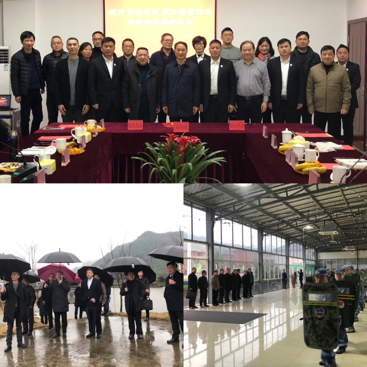 集团党委书记、董事长芦俊首先对珺鼎短短一年多时间取得的成绩表示祝贺,并表明今天携班子全体成员和相关职能部室来是体现和珺鼎合作高度的战略意义,这是攸关集团发展的大事,并表达三层意思:一是表示感谢和致敬。对珺鼎在企业两次合法维权中主动支援、全员政治素质军事化素质提升助推企业发展、提高复退军人自豪感和积极性调动等方面的支持表示感谢,并对珺鼎短短一年多通过艰苦创业取得的成绩表示敬意。二是加强合作和提升。从集团员工军事化素质提升和城市安全应急重要性战略角度出发,在原先先锋连组建指导、安保应急支援、员工培训基础上坚定和有军事背景、有实力、有能力的企业加深合作。要坚定加强合作的决心,创造性地开展深度合作,加强互动联动,并从“员工素质提升、准军事化抢修队伍打造、抗险救灾应急、两级干部军事化培训提升、优秀退伍军人推荐”几方面精准合作。三是对珺鼎的核心定位、核心产业和基地打造策划上提出了建议。