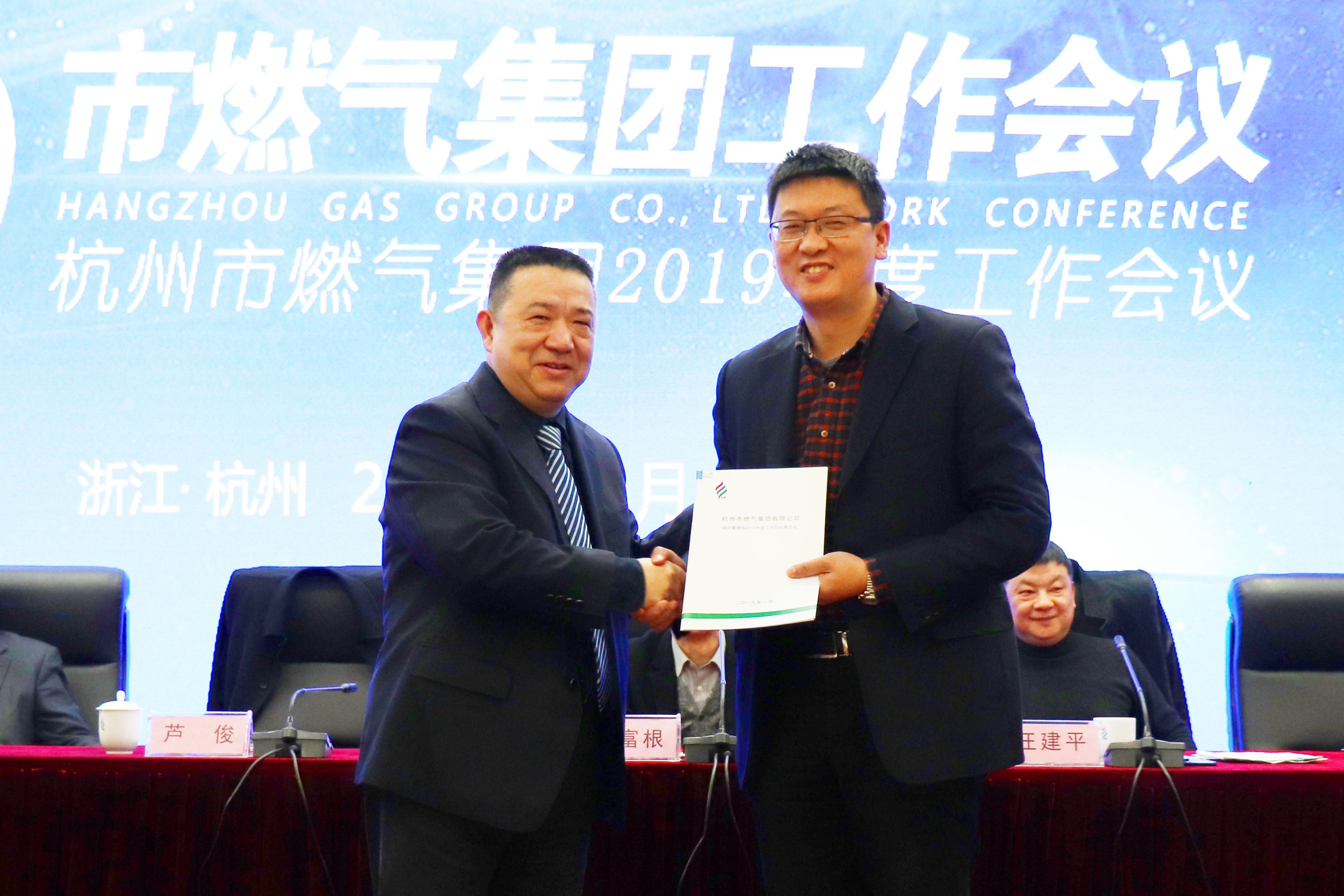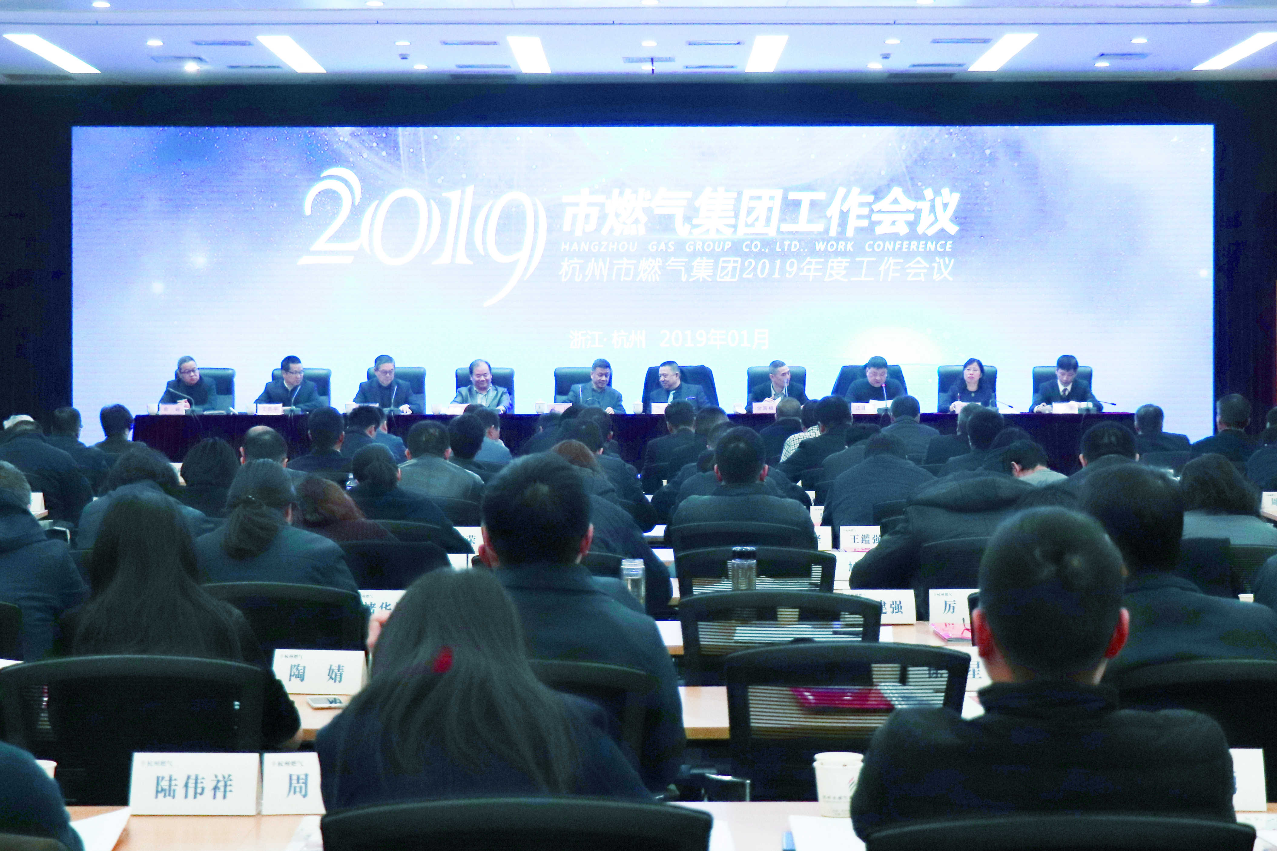 2019年1月25日上午,银河官网 召开2019年度工作会议。市城投集团党委副书记范川、集团领导班子成员、两级管理干部、劳模工匠、先进员工代表、参控股企业班子成员、合作单位相关负责人、省市燃气协会及地下管道业协会秘书长等220余人参加;会议由集团党委副书记俞磊主持。