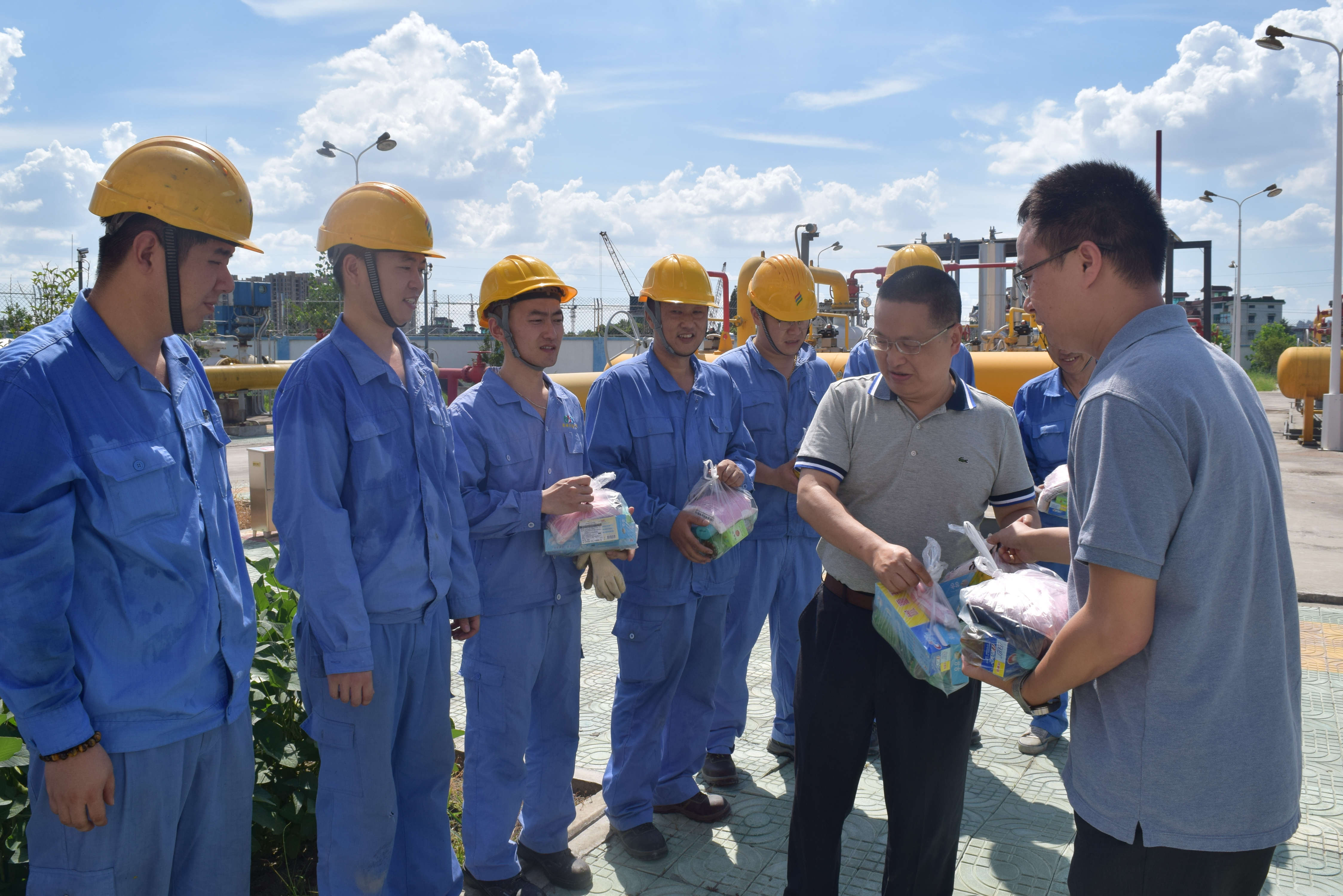 加气站进行高温慰问,详细询问了加气站近期气量销售情况及於潜站的建设情况,要求工作不松懈的同时要格外关注员工的身体健康。同时叮嘱员工们在高温下工作一定要注意做好防护,并向大家道一声辛苦了。