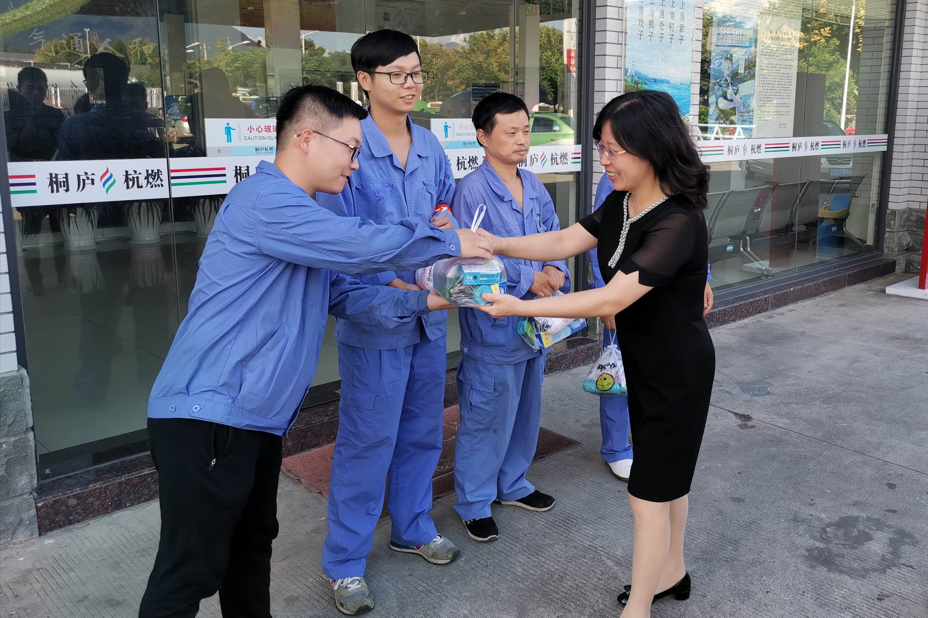 集团副总经理朱琴君来到桐庐加气站进行高温慰问,叮嘱大家在高温作业时要增强自我防护意识,全面排查安全生产隐患,做好劳动保护工作,要“歇中间、做两头”,确保高温季节的安全生产。