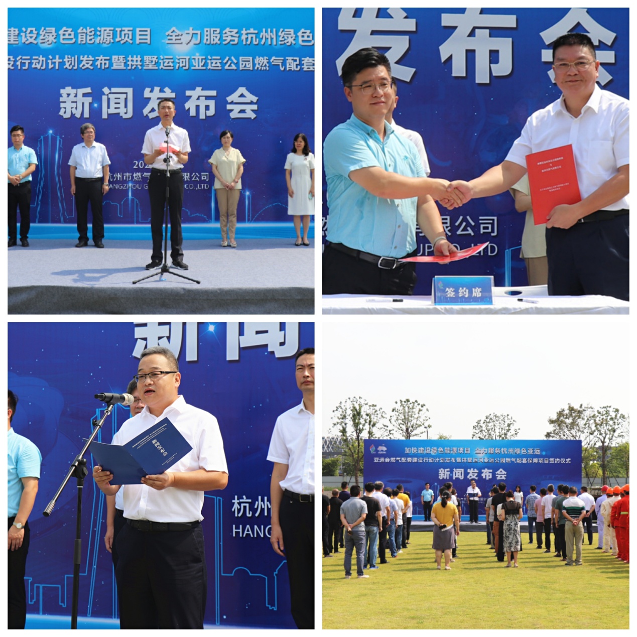 9月9日,是2022杭州亚运会倒计时两周年之际,集团组织召开“加快建设绿色能源项目 全力服务杭州绿色亚运——亚运会燃气配套建设行动计划发布暨拱墅运河亚运公园燃气配套保障项目签约仪式”新闻发布会。杭州亚组委场馆建设部副部长陆春江、副处长李沈飞、片组负责人胡黄蔚,市建委地空管线处副处长陈莉钧,市城投集团工程建设部部长金兴平,拱墅运河亚运公园项目副总指挥韩国利,蓝城杭亚文体发展有限公司总经理刘宓,银河官网 党委副书记、副总经理朱琴君,副总经理王忠平、俞峻,杭天公司副总经理刘元清等领导嘉宾出席,11家省市媒体现场报道。