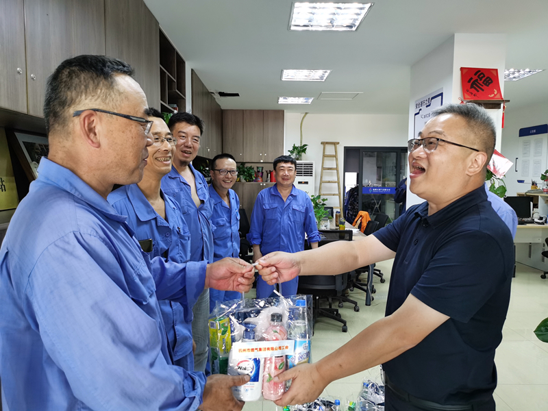 领导班子深入基层一线,把“清凉”送到28个基层班组,为500余名员工送上防暑降温物品,并与他们亲切交谈,感谢他们为保障城市燃气安全和稳定供气作出的努力,叮嘱在高温环境下作业一定要注意防暑降温,让高温天气坚守在基层一线的员工们感受到组织的关心关爱。