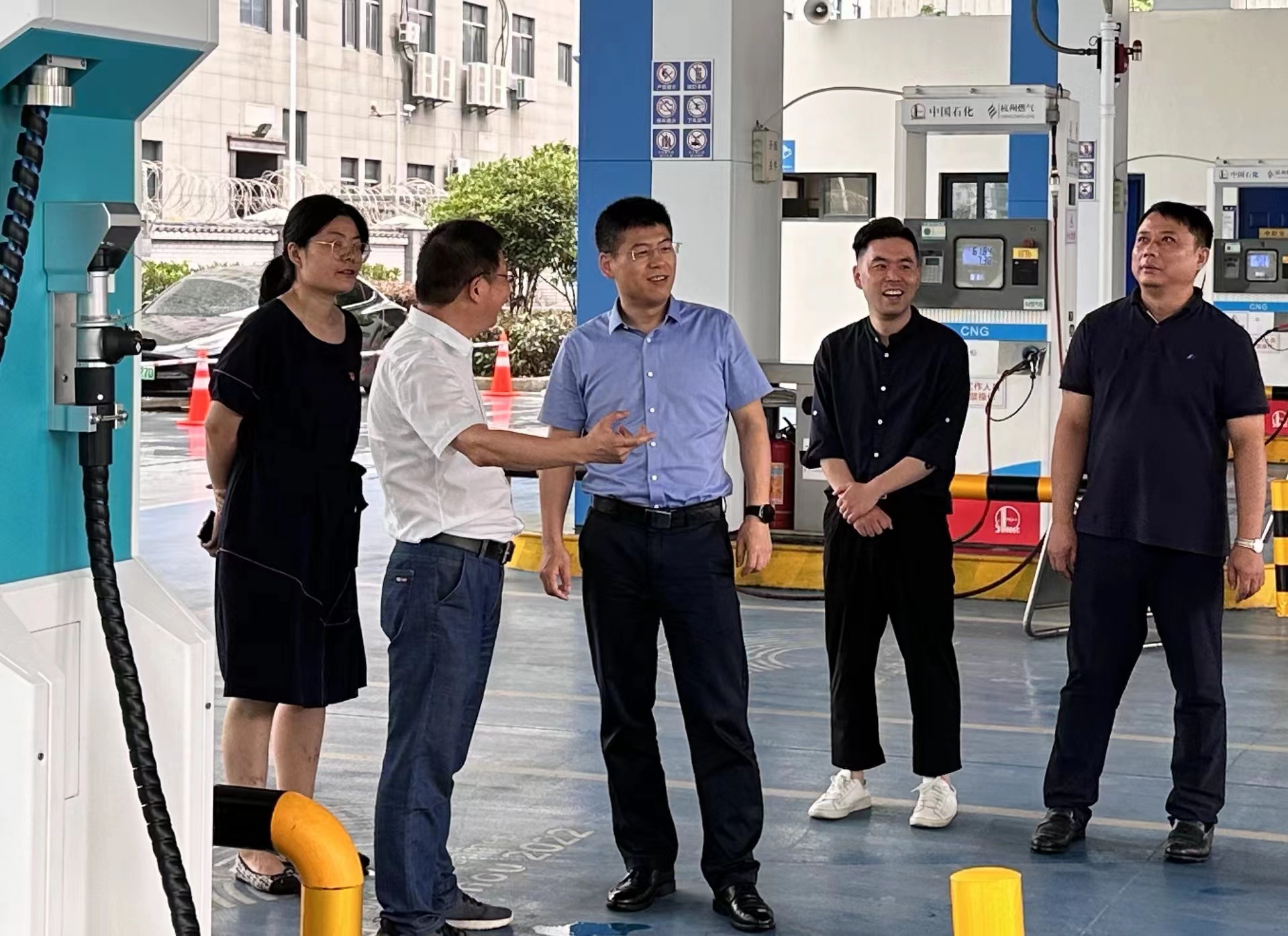 6月30日下午,银河官网 党委书记、董事长万向伟携办公室负责人莅临中石化银河 滨江综合能源站调研指导,公司总经理韩国强、副总经理陈建华及办公室负责人陪同。