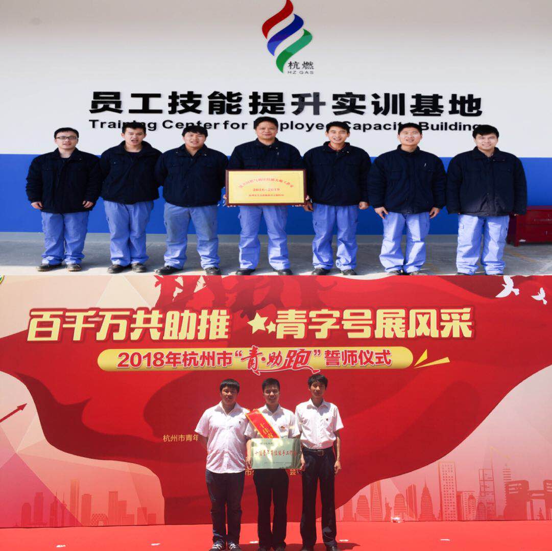 5月3日上午,2018年杭州市青年文明号等青年集体深化助推“最多跑一次”改革誓师仪式在杭州市公安局指挥中心大楼举行。杭天管网输配分公司沈卫国燃气调压技能大师工作室被授予2017年度杭州市“十佳青年岗位能手工作室”。同时,分公司优秀青年骨干钟奇代表城投集团接受青年突击队授旗。