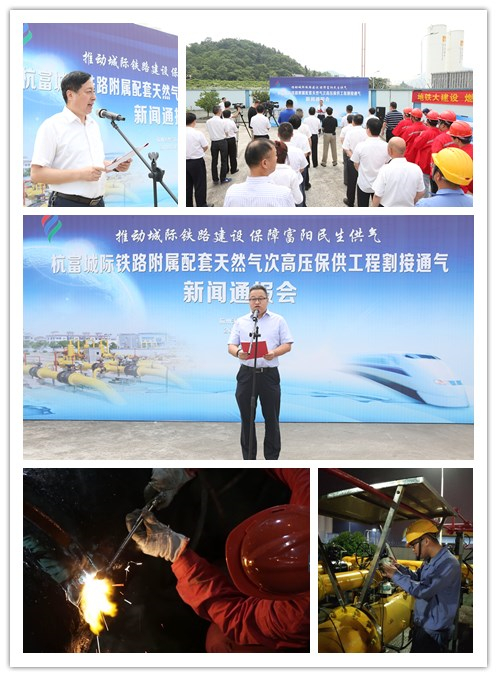 6月12日上午,杭天公司在富阳高中压调压站内召开“杭富城际铁路附属配套工程杭州至富阳天然气次高压保供管道割接通气”新闻通报会。市轨道办工程保障处副处长陈新、杭州市地铁集团工程一部部长肖怀全、杭州市银河官网 副总经理王忠平、富阳华润天然气有限公司副总经理赵冠华应邀出席。杭天公司经营班子、银河官网 建设发展部、综合管理部及杭天公司相关职能部室及下属各分公司负责人,杭富线次高压保供工程设计、建设、监理单位共30余人参加。浙江公共新闻频道、杭州1台、杭州2台、杭州日报、钱江晚报、都市快报、杭州网、杭州出版社等省市新闻媒体现场报道。银河官网 总经理助理、杭天公司副总经理俞峻作新闻发布,杭天公司党委副书记陆伟祥主持。