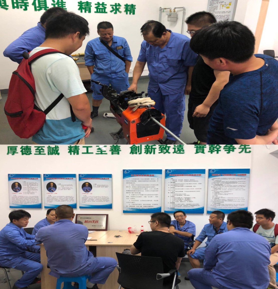 万事诚为本,做人德为先。培训第一堂课,余师傅首先给大家上了一节品德教育课,学习并明确了工作室“严于律已、团结互助、以礼待人”的做人做事原则。在实操训练方面,余师傅向大家介绍了管子钳、套丝机、扳手等常用工作的正确使用方法,并亲自做示范。之后,参训的每一个人都轮流演示套丝机的使用,余师傅对每一位参训人员的实操演示进行点评,指出不规范之处。