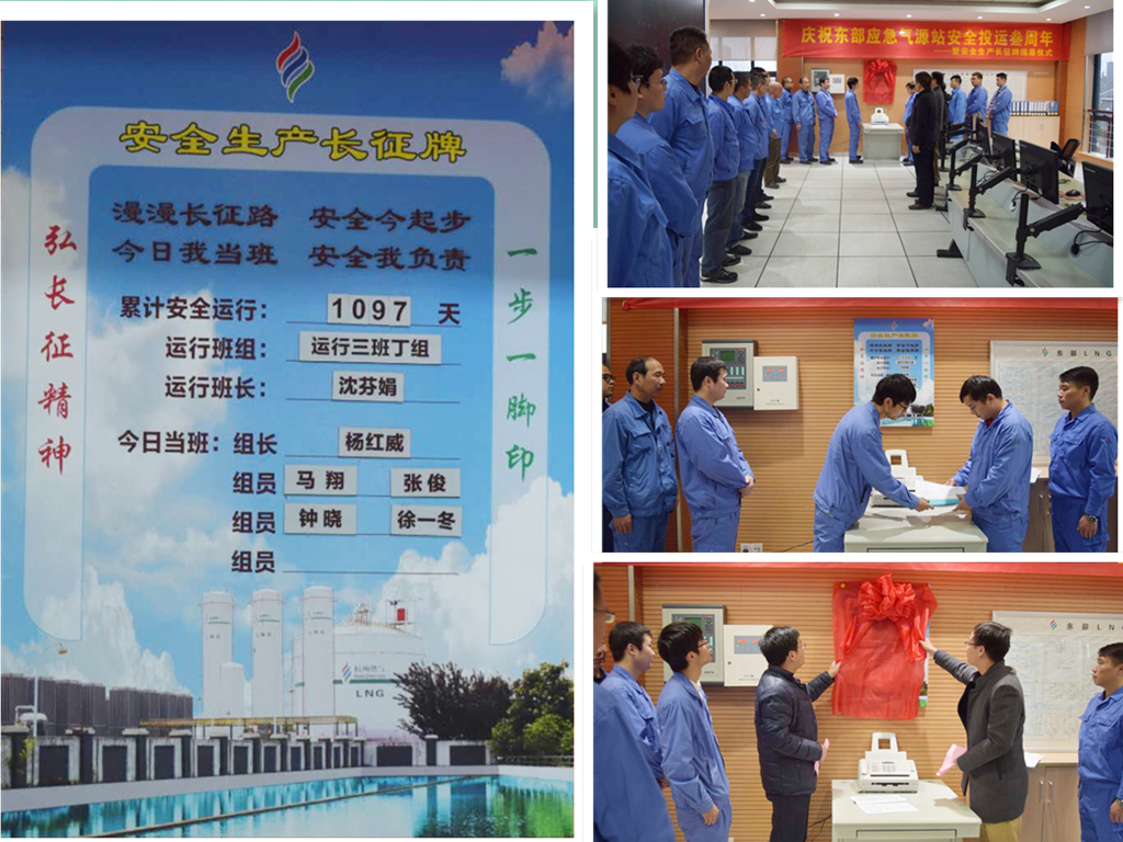 漫漫长征路,安全今起步。截止揭幕式当天,东部LNG应急气源站自建成投运以来,已安全稳定运行1097天。安全长征牌整体设计为一个安字,以LNG场站作为背景,字体色彩和背景蕴含金木水火土五种自然元素。长征牌上当天的运行班组运行人员情况一目了然,一个安字,一个名牌,一本记录,一句承诺,一个仪式。分公司设立安全长征牌,旨在提醒每位员工都要具备高度的使命感和责任感,用心做好每一天的工作。