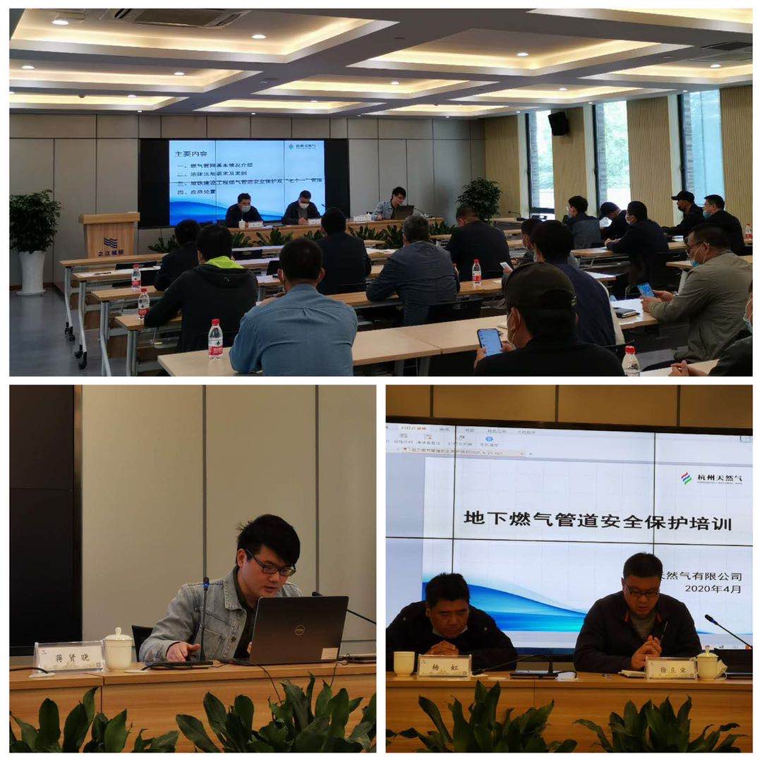 为推进疫情后的复工复产,预防第三方破坏,4月23日公司主动联系上门对接之江城投,组织建设施工单位开展大型工程“双七个一”燃气管道保护知识培训。