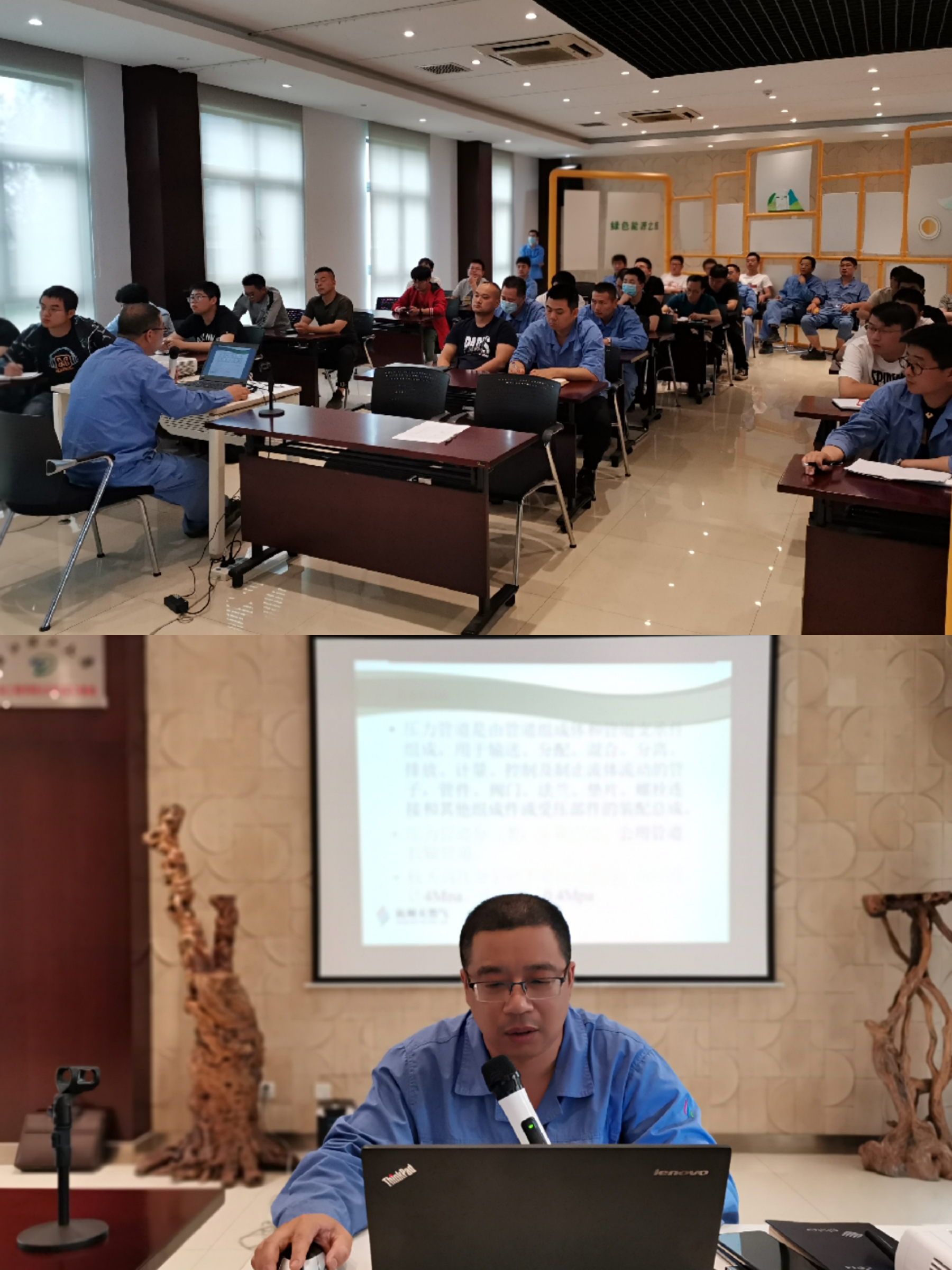 作为技艺精湛的董大师,在本次培训中摒弃以往专对某一门维修技能教学的形式,根据实际工作结合两会、安全生产月形势及气候环境,系统全面梳理了压力管道基本概念、高压场站及管线巡查监护、关键设备维护保养等常规知识,较多采用图文、数据、案例区分别类、敲击重点、印刻记忆,直观实用。董大师表示,做好安全工作归根于基础、细节和态度,华而不实远不如细水长流,唯基础扎实才能确保安全堡垒坚不可摧。他希望大家要严格对照维修巡检检验尺,规范作业、精益技能、强化担当。