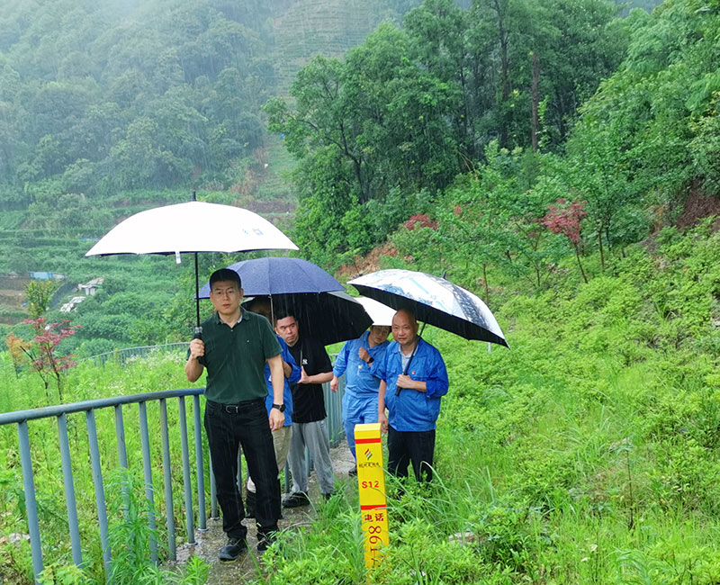 万董一行冒着大雨沿着高压日常山体段巡检线路拾阶而上,仔细检查山体巡检游步道路况;详细询问巡检人员日常巡检作业内容和线路,并强调要充分重视现阶段防汛工作,加强山体段巡检巡护,防洪防塌方;要保持巡检线路畅通,保证巡检工作顺利开展。同时也叮嘱要关心关爱员工身心健康及人身安全,做好安全防护的同时提高巡检效率。
