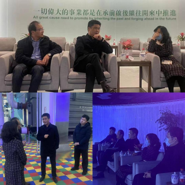 沈董一行参观体验了绿能工厂的“奥秘”,并详细了解萧山机场天然气分布式能源系统设备配置、项目建设调试情况、项目预期经济性以及项目的创新性。在270度沉浸式环幕展厅中通过声、光、电结合多媒体演示深入感受“绿能工厂、环保课堂、艺术空间”的魅力,从中更为直观地体验到天然气分布式能源利用技术的先进性。随后银河官网 总经理朱琴君向沈董汇报了银河官网 目前天然气分布式能源发展、新能源市场开发情况和取得的成果及发展过程中遇到的问题,并就未来能源公司新能源产业发展提出思路和想法。