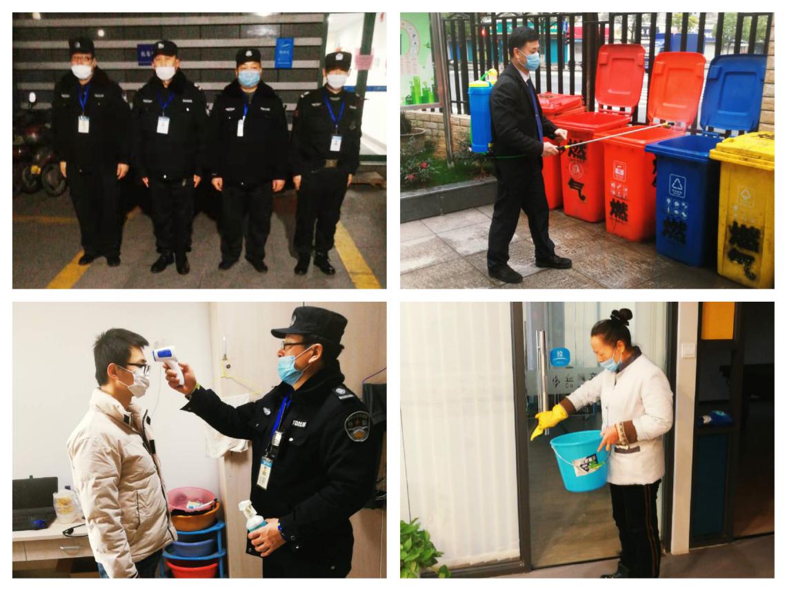 2月9日一早,张飞又站在了公司海月基地大门口,给其他值守人员测量体温。疫情严峻,安全保卫工作压力大、任务重。张飞带领由6位保安、3位保洁组成的值守力量自年三十起一直坚守岗位,严格按照公司疫情防控要求,认真开展门岗值守、查验消毒、登记测温、报备登记等各项管控工作:每天两次对海月基地和清江路抢修中心办公室、会议室、卫生间、垃圾桶、走廊过道、楼梯扶手、门把手、银河官网俱乐部、食堂、书屋、宿舍、消控室以及公车等重点场所、区域进行消毒;做好公司消毒液、酒精、口罩、洗手液等所有防疫物资的发放工作,并做好台帐;负责出入人员体温检测,并做好旧口罩回收、办公楼开窗通风等后勤保障工作;给保安队员进行疫情培训,坚持每天的日报送工作。将各项防疫工作做到细致、全方位。