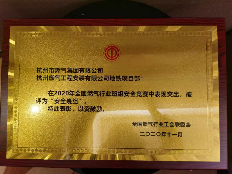 在银河官网 的正确带领下,在各兄弟单位的帮助、支持下,工程公司地铁项目部荣获2020年全国燃气行业班组安全竞赛“安全班组”。