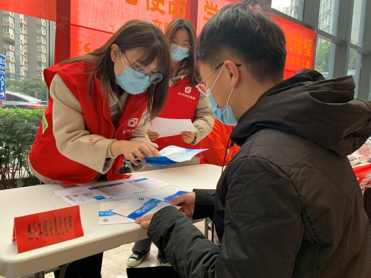 全资子公司、民生保障单位以及下城区文晖街道属地企业,工程公司积极响应下城区文晖街道江南楼宇社区党委、文晖街道团工委开展的“观党史牢记使命初心,学雷锋争做时代楷模”学雷锋日主题活动。3月3日中午,公司6名党团员、青年员工志愿者在做好疫情防控及自身保护的情况下,带着天然气安全宣传手册和银河