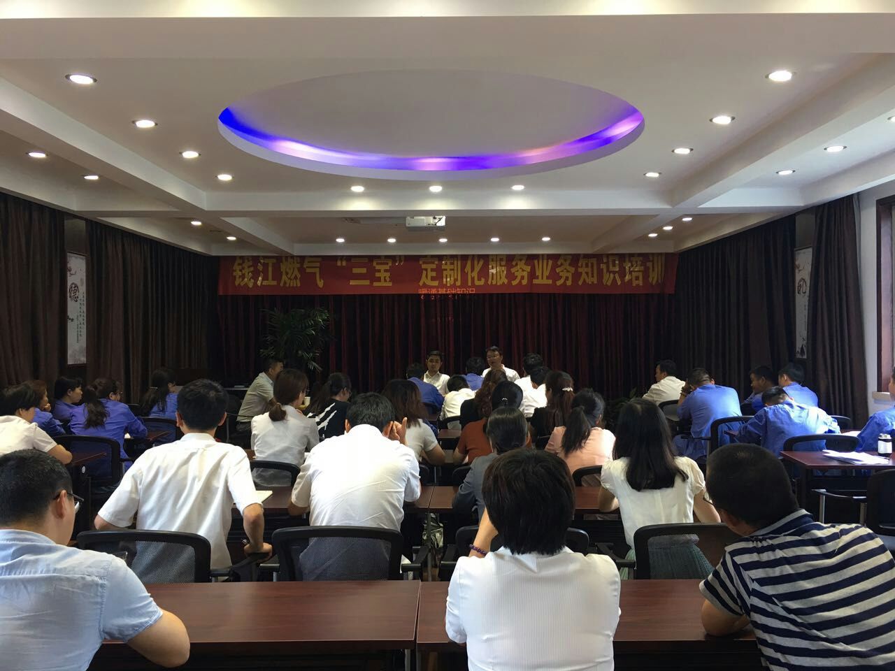 为积极推动集团“5441”战略和四个发展,坚定不移地推进“三宝+”定制化服务工作,钱江公司领导班子与全体员工近距离座谈,就如何创新发展、延伸服务召开了全体员工交流分享会,并邀请燃气具经营公司总经理助理鲍俊分别于5月31日、6月1日为全体员工开展“三宝”定制化服务知识培训,共计92人参加。此次交流会旨在转变员工的惯性思维,开拓发展模式,进一步提高全员营销意识和每位员工的定制化服务水平。