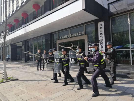 3月2日14:40分,燃气大厦一楼大厅门前,1名手持长棍的可疑男子企图进入大厅,执勤保安上前询问、并要求测体温和身份登记。该男子突然拔出“凶器”企图强闯。值勤保安立即利用身边的盾牌、钢叉与“不法分子”周旋对峙,分公司应急预案随即启动,物管部主任沈梁华、安全管理员王亮等闻讯立即赶到大厅……在大厦增援保安、西溪派出所110巡逻民警共同努力下,最终成功将“暴徒”制服。