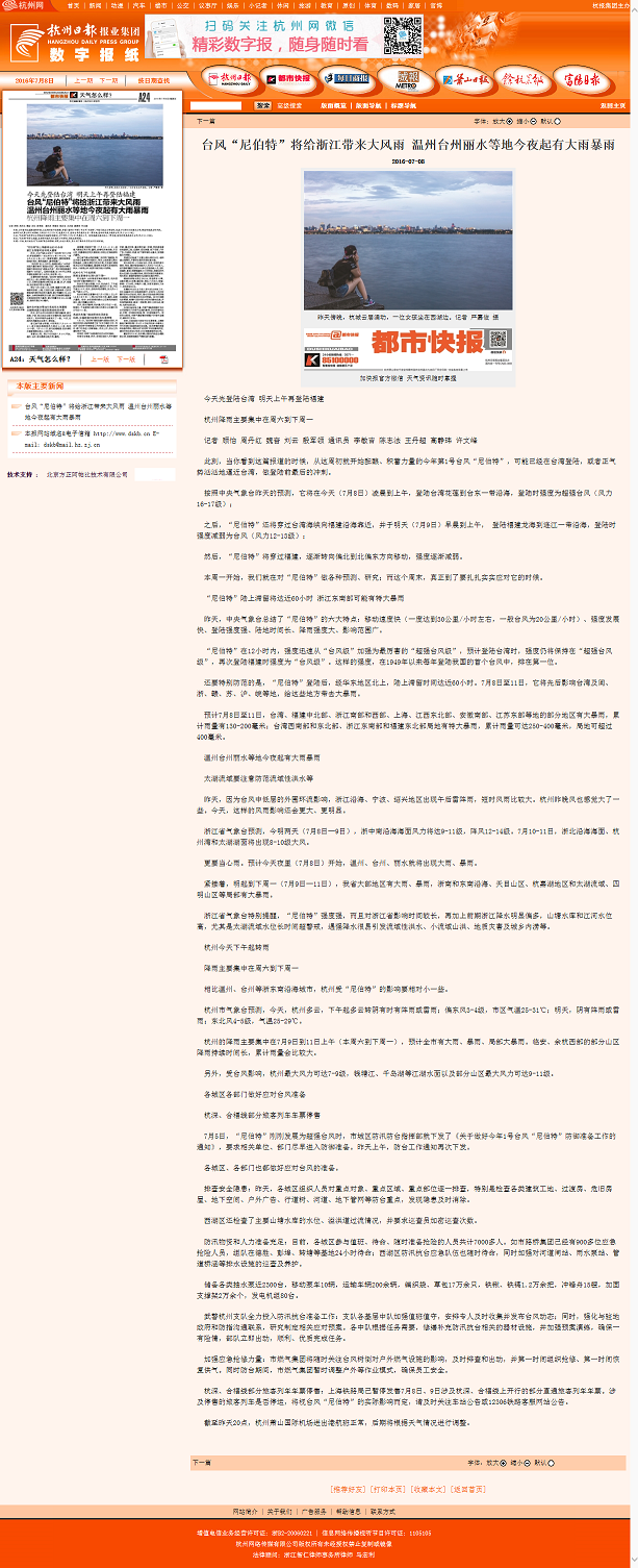 台风“尼伯特”将给浙江带来大风雨 温州台州丽水等地今夜起有大雨暴雨