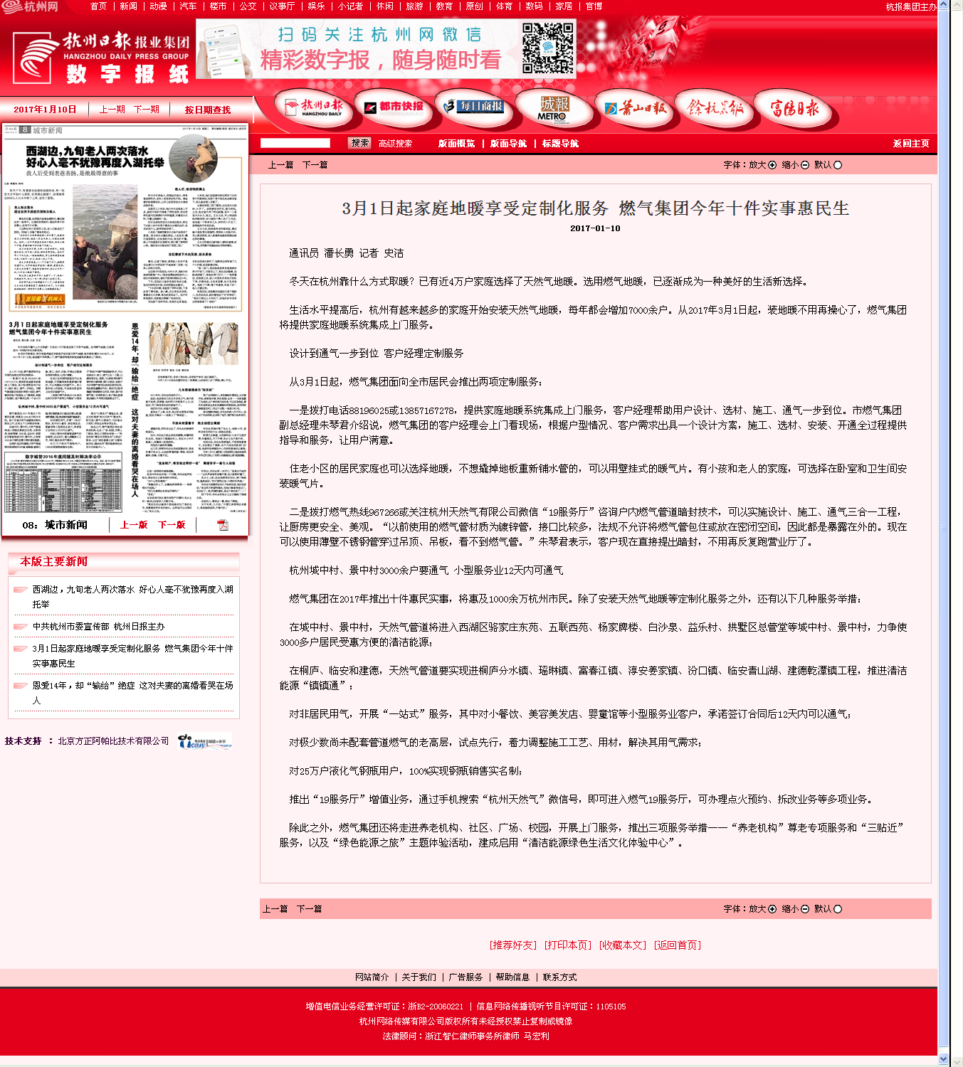 银河官网 在2017年推出十件惠民实事,将惠及1000余万杭州市民。除了安装天然气地暖等定制化服务之外,还有以下几种服务举措: