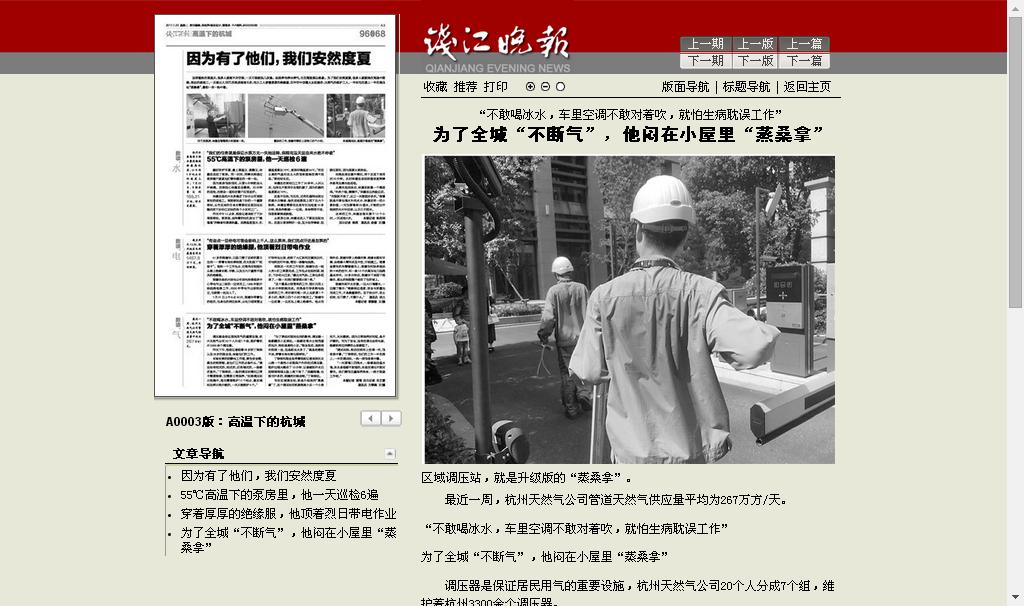 调压器是保证居民用气的重要设施,杭州天然气公司20个人分成7个组,维护着杭州3300余个调压器。
