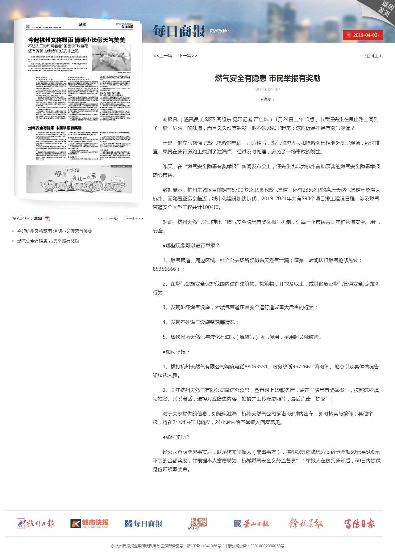 对此,杭州天然气公司推出“燃气安全隐患有奖举报”机制,让每一个市民共同守护管道安全、用气安全。