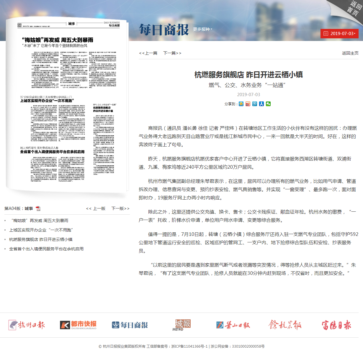 值得一提的是,7月10日起,转塘(云栖小镇)综合服务厅还将入驻一支燃气专业团队,包括守护592公里地下管道运行安全的巡检、区域巡护的管网工、一支户内、地下抢修综合型队伍和安检、抄表服务员。