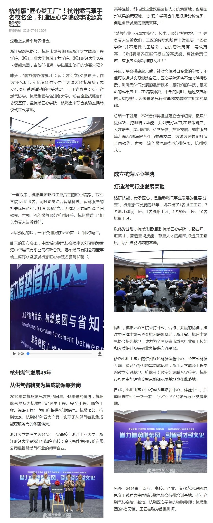 “一直以来,银河官网 都很注重员工的匠心培养,‘匠心学院’因此得名。同时紧密结合智慧科技、智能服务的相关优质企业,打通创新链条,为城为民共同打造全国领先、世界一流的燃气服务‘杭州经验、杭州模式’!”相关负责人告诉我们。