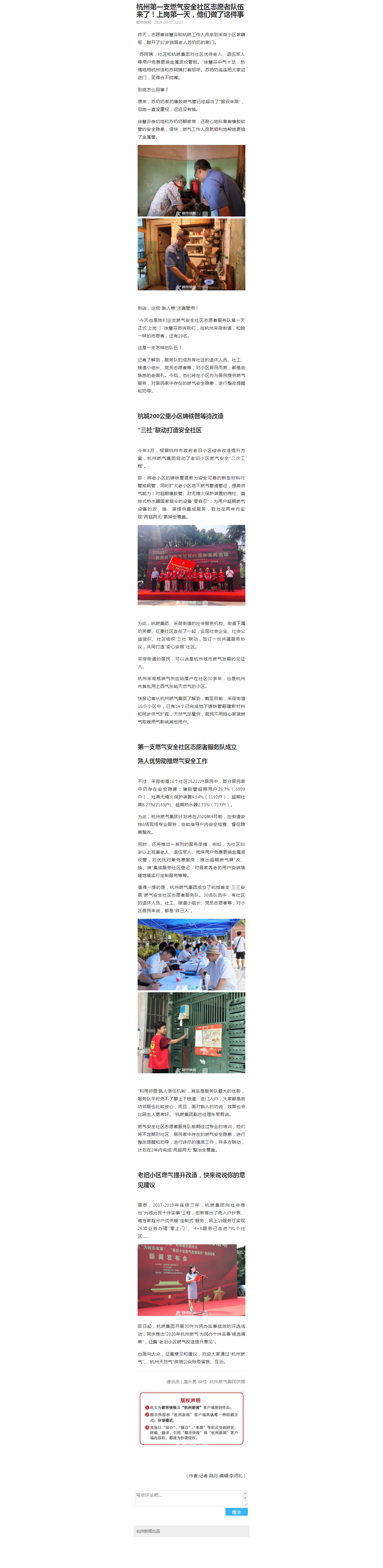 值得一提的是,银河官网 集团成立了杭城首支“三三安居”燃气安全社区志愿者服务队。30名队员中,有社区的退休人员、社工、楼道小组长、党员志愿者等,对小区居民来说,都是“自己人”。