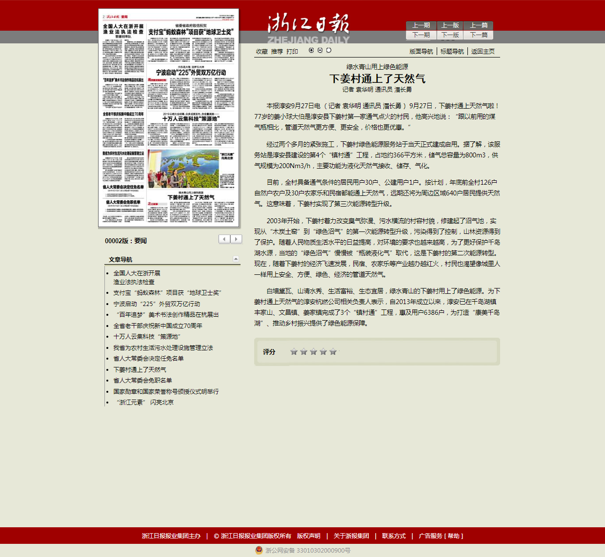 白墙黛瓦、山清水秀、生活富裕、生态宜居,绿水青山的下姜村用上了绿色能源。为下姜村通上天然气的淳安银河 公司相关负责人表示,自2013年成立以来,淳安已在千岛湖镇丰家山、文昌镇、姜家镇完成了3个“镇村通”工程,惠及用户6386户,为打造“康美千岛湖”、推动乡村振兴提供了绿色能源保障。