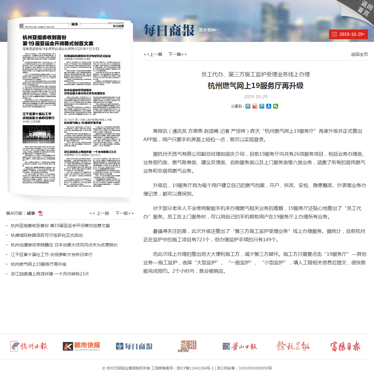 最值得关注的是,此次升级还推出了“第三方施工监护受理业务”线上办理服务。据统计,目前杭州正在监护中的施工项目有723个,但办理监护手续的只有149个。