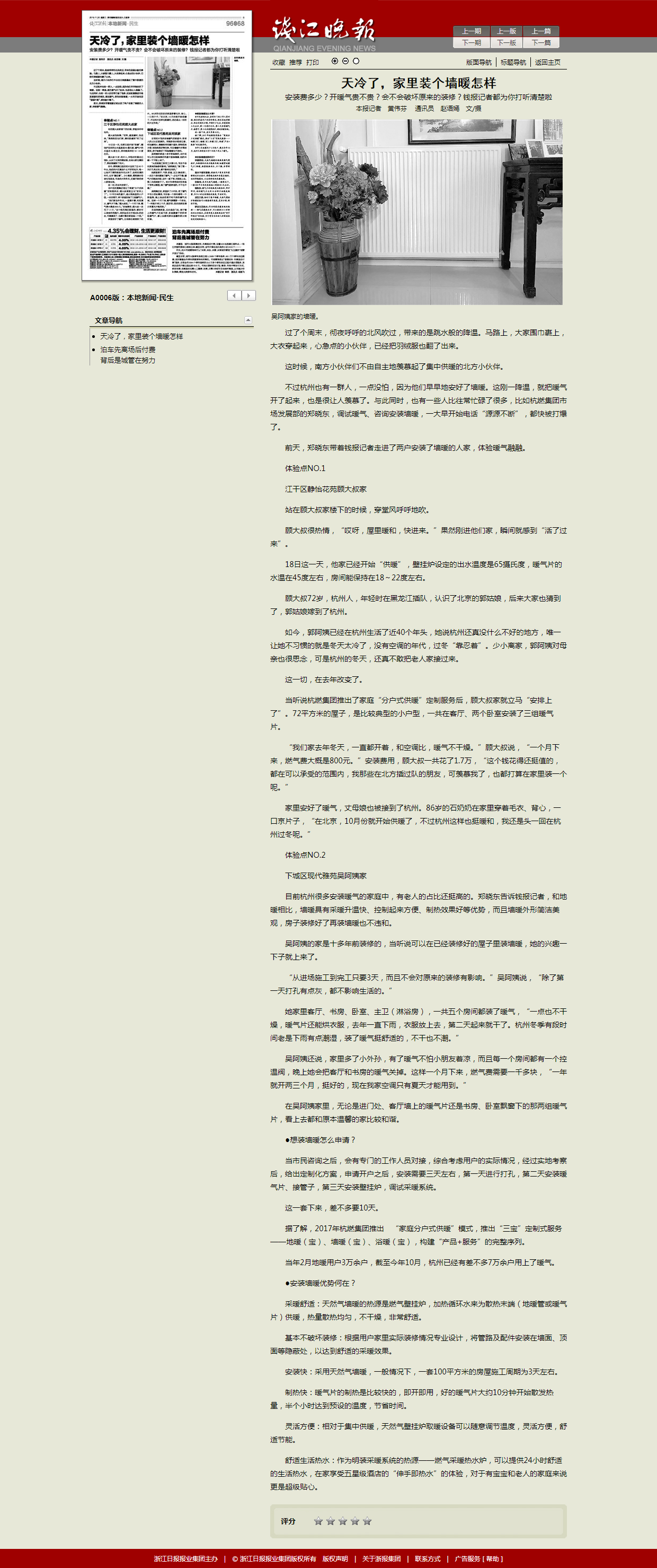 “我们家去年冬天,一直都开着,和空调比,暖气不干燥。”顾大叔说,“一个月下来,燃气费大概是800元。”安装费用,顾大叔一共花了1.7万,“这个钱花得还挺值的,都在可以承受的范围内,我那些在北方插过队的朋友,可羡慕我了,也都打算在家里装一个呢。”