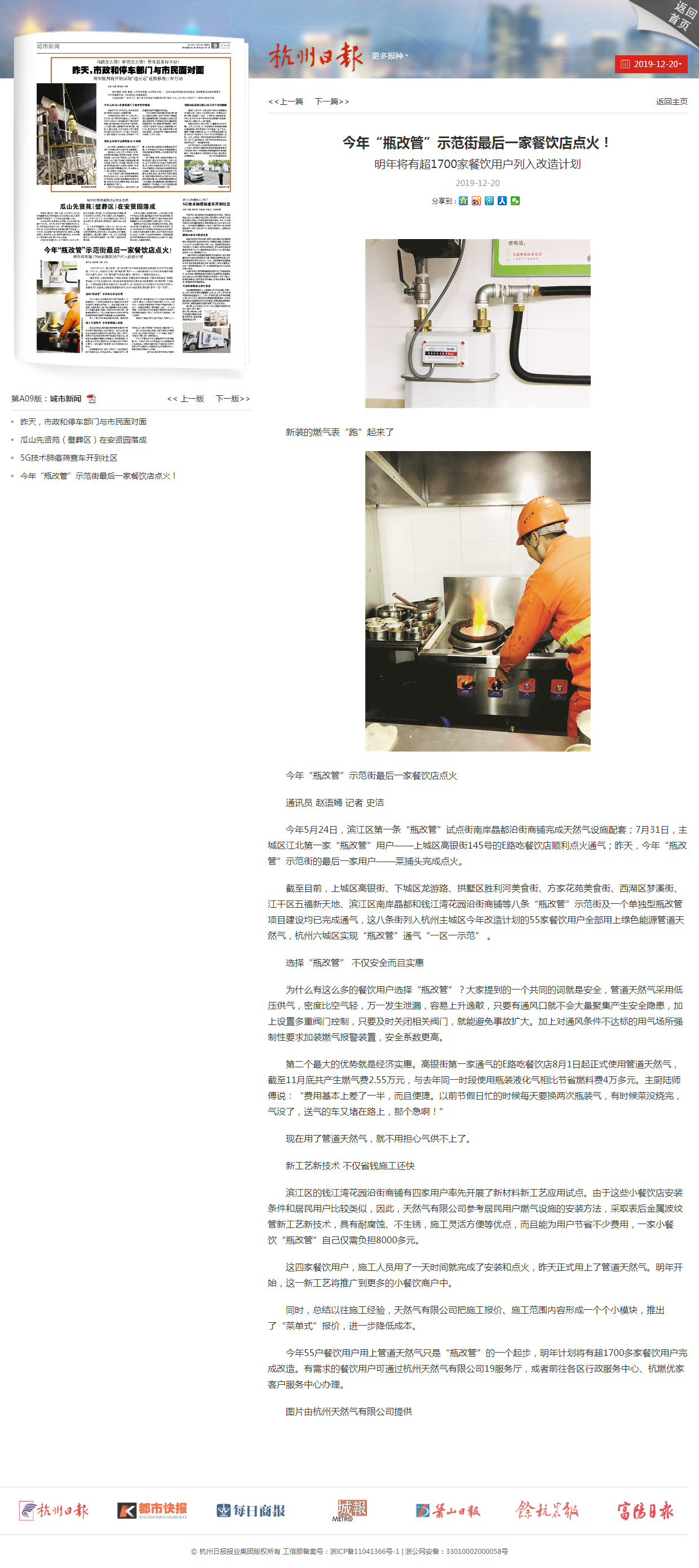 今年55户餐饮用户用上管道天然气只是“瓶改管”的一个起步,明年计划将有超1700多家餐饮用户完成改造。有需求的餐饮用户可通过杭州天然气有限公司19服务厅,或者前往各区行政服务中心、银河 优家客户服务中心办理。