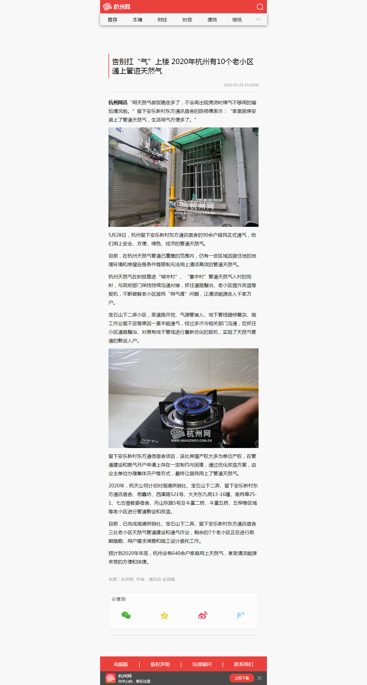 预计到2020年年底,杭州会有640余户家庭用上天然气,享受清洁能源来带的方便和快捷。