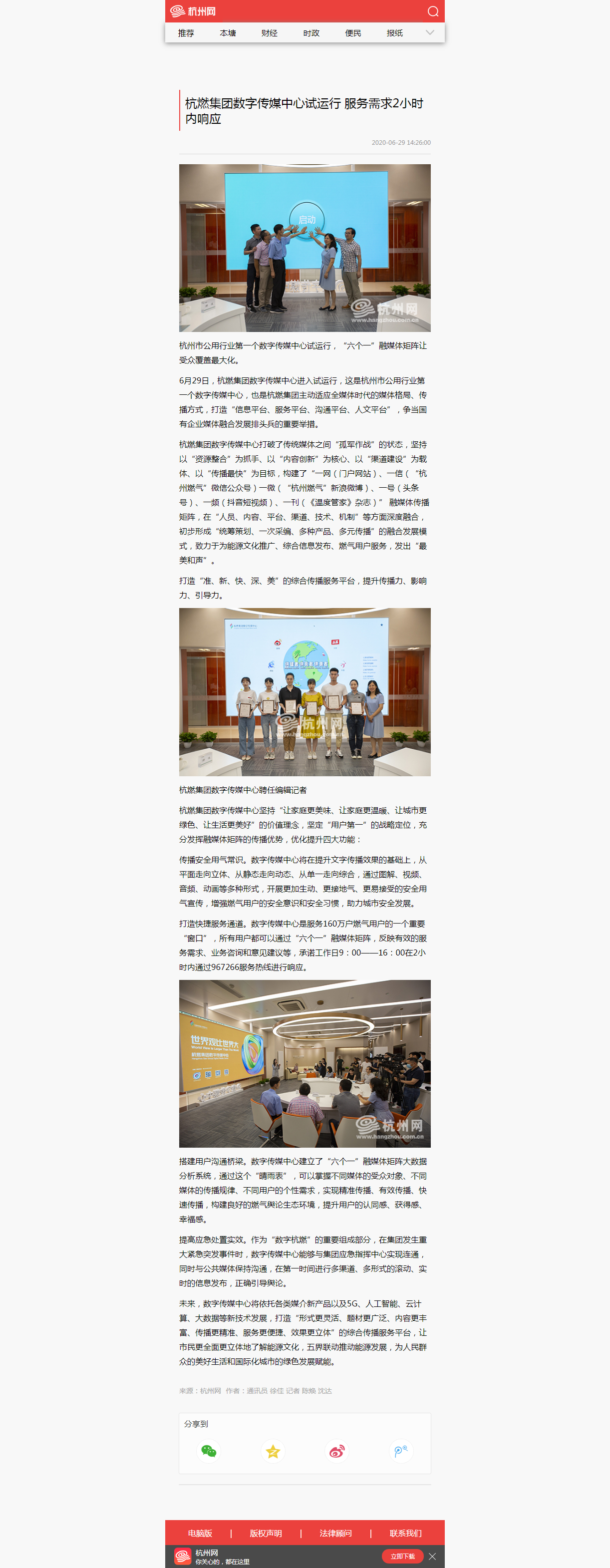 杭州市公用行业第一个数字传媒中心试运行,“六个一”融媒体矩阵让受众覆盖最大化。