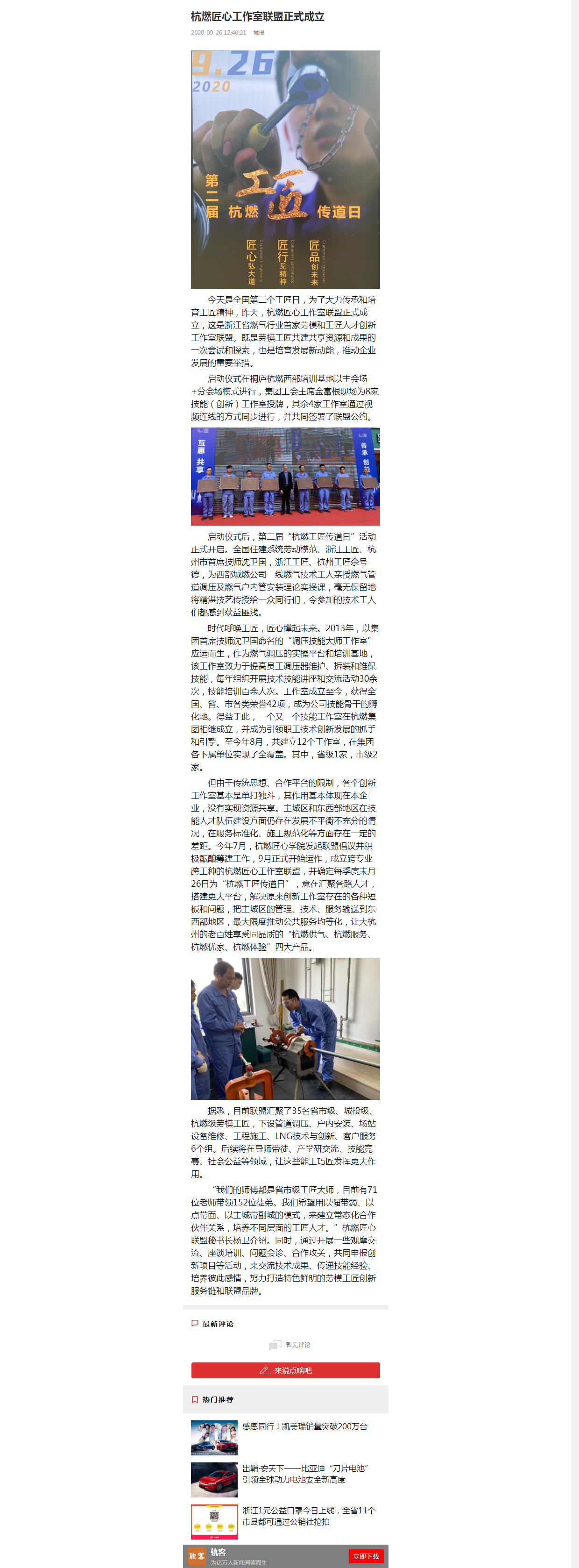 今天是全国第二个工匠日,为了大力传承和培育工匠精神,昨天,银河 匠心工作室联盟正式成立,这是浙江省燃气行业首家劳模和工匠人才创新工作室联盟。既是劳模工匠共建共享资源和成果的一次尝试和探索,也是培育发展新动能,推动企业发展的重要举措。