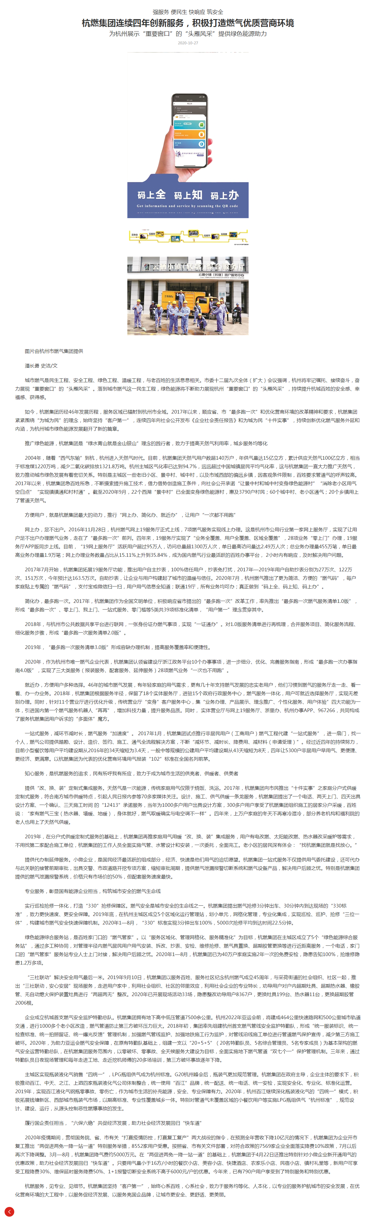 如今,银河官网 历经46年发展历程,服务区域已辐射到杭州市全域。2017年以来,顺应省、市“最多跑一次”和优化营商环境的改革精神和要求,银河官网 紧紧围绕“为城为民”的理念,始终坚持“客户第一”,连续四年向社会公开发布《企业社会责任报告》和为城为民“十件实事”,持续创新优化燃气服务外延和内涵,为杭州城市绿色能源发展翻开了新的篇章。