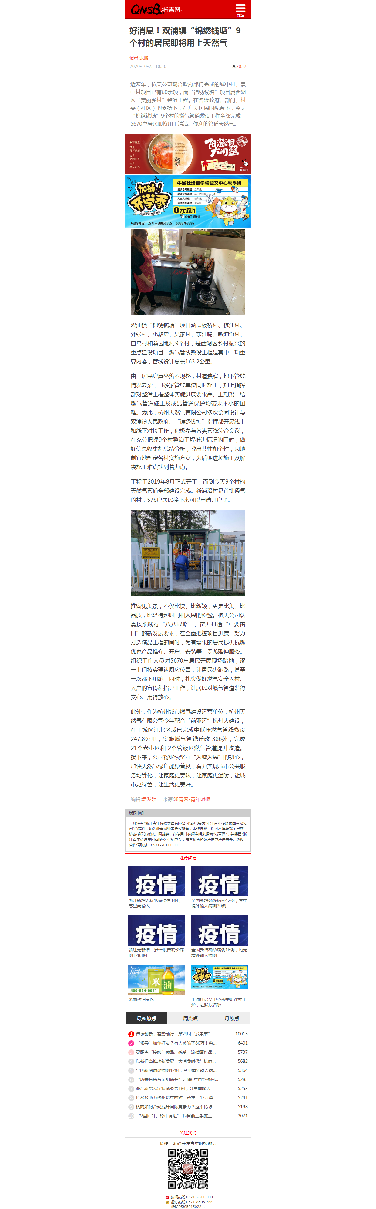近两年,杭天公司配合政府部门完成的城中村、景中村项目已有60余项,而“锦绣钱塘”项目属西湖区“美丽乡村”整治工程。在各级政府、部门、村委(社区)的支持下,在广大居民的配合下,今天“锦绣钱塘”9个村的燃气管道敷设工作全部完成,5670户居民即将用上清洁、便利的管道天然气。
