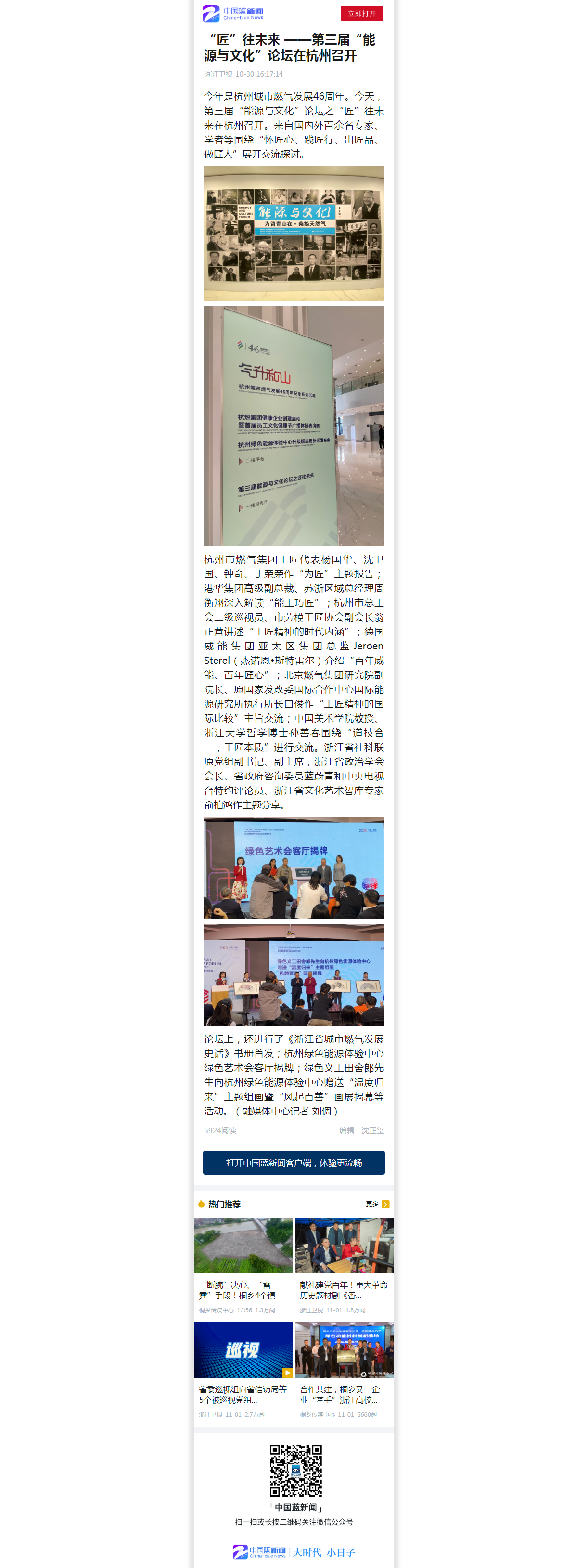 今年是杭州城市燃气发展46周年。今天,第三届“能源与文化”论坛之“匠”往未来在杭州召开。来自国内外百余名专家、学者等围绕“怀匠心、践匠行、出匠品、做匠人”展开交流探讨。