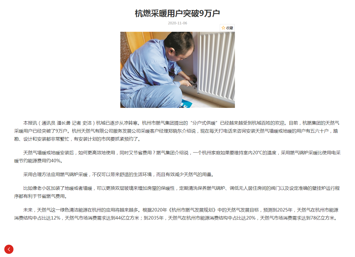 天然气墙暖或地暖安装后,如何更高效地使用,同时又节省费用?银河官网 介绍说,一个杭州家庭如果要维持室内20℃的温度,采用燃气锅炉采暖比使用电采暖节约能源费用约40%。