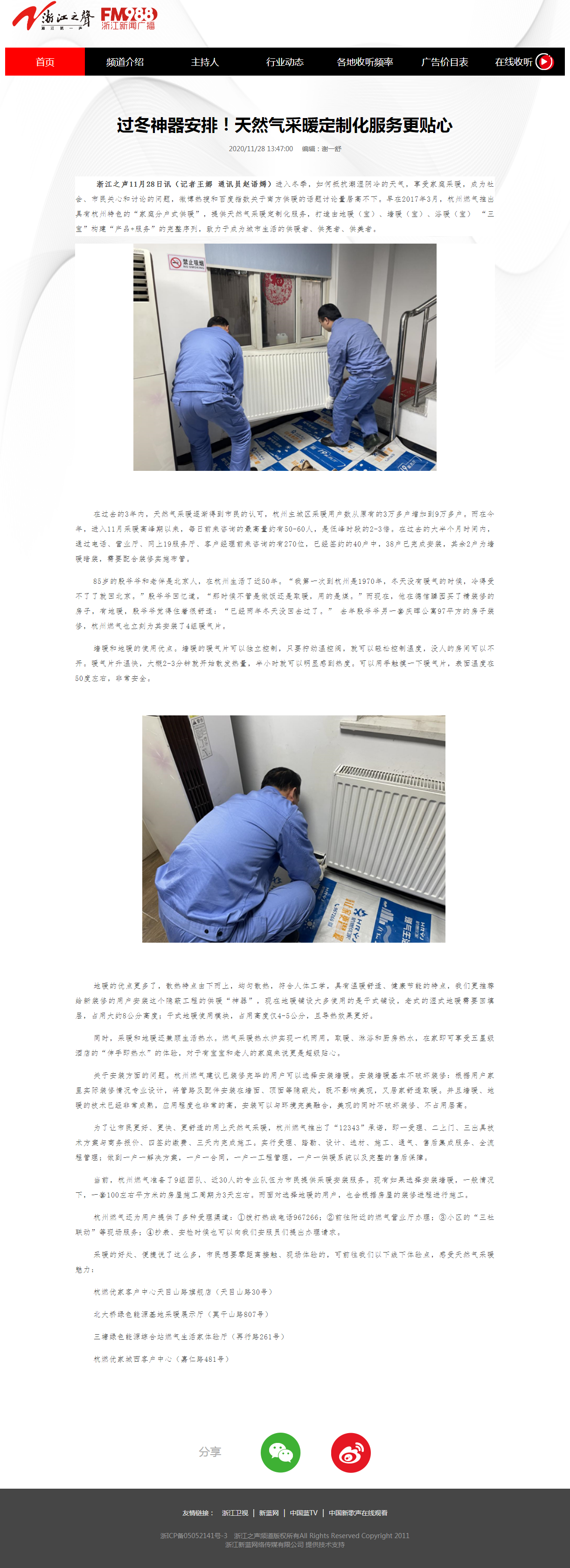 浙江之声11月28日讯(记者王娜 通讯员赵语嫣)进入冬季,如何抵抗潮湿阴冷的天气,享受家庭采暖,成为社会、市民关心和讨论的问题,微博热搜和百度指数关于南方供暖的话题讨论量居高不下。早在2017年3月,银河官网 推出具有杭州特色的“家庭分户式供暖”,提供天然气采暖定制化服务,打造由地暖(宝)、墙暖(宝)、浴暖(宝) “三宝”构建“产品+服务”的完整序列,致力于成为城市生活的供暖者、供亮者、供美者。