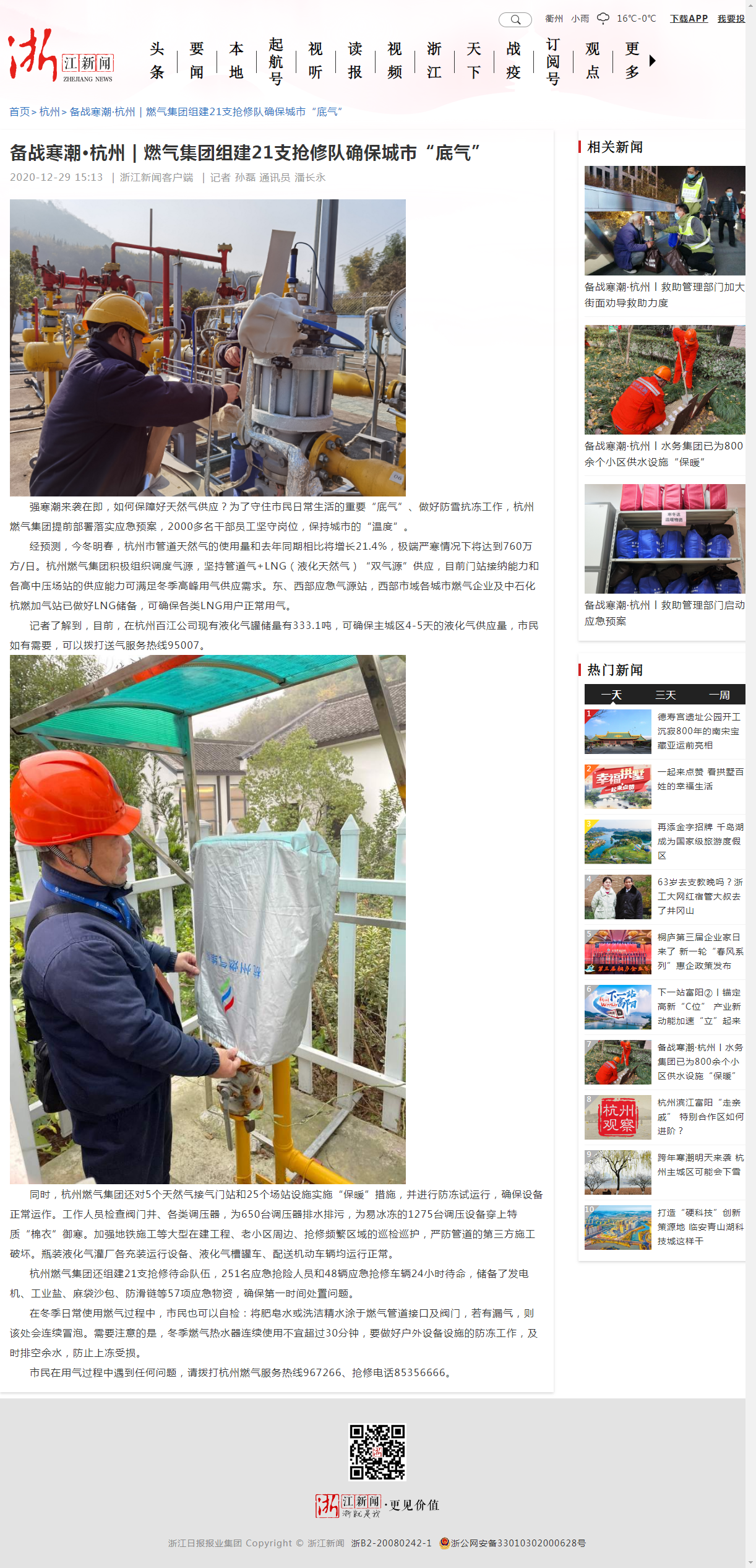备战寒潮·杭州 银河官网 组建21支抢修队确保城市“底气”