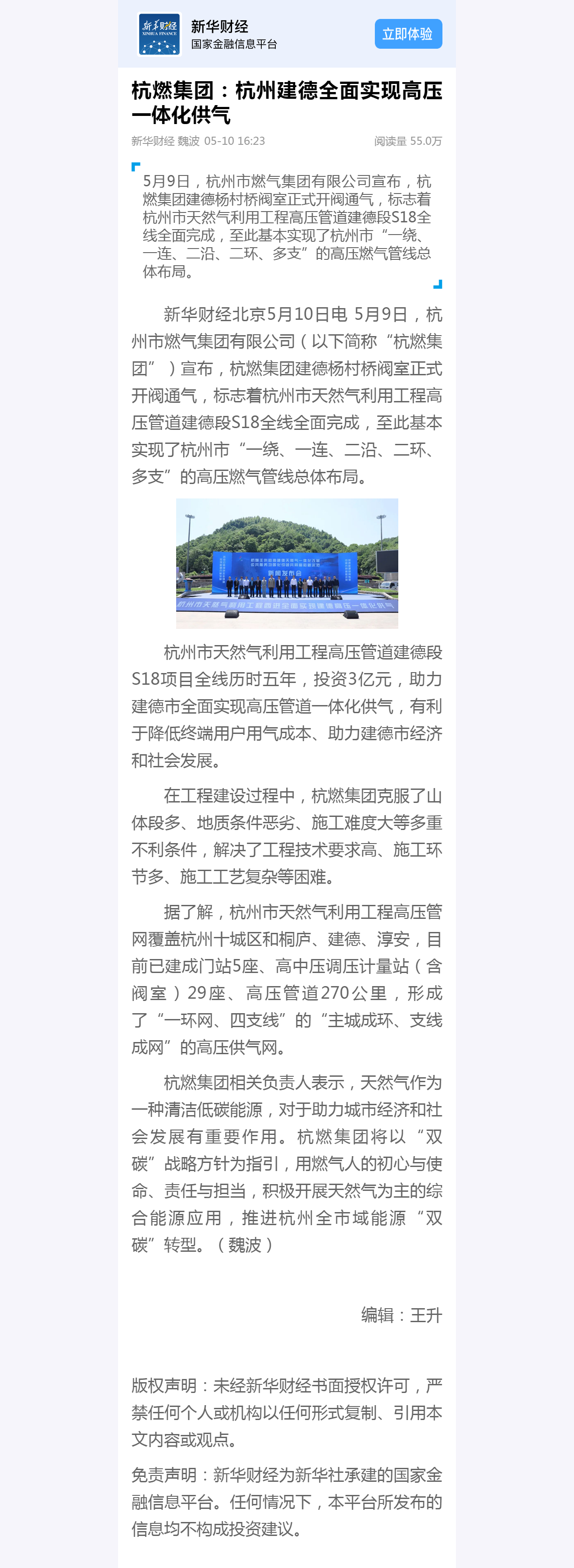 新华财经北京5月10日电 5月9日,杭州市银河官网 有限公司(以下简称“银河官网 ”)宣布,银河官网 建德杨村桥阀室正式开阀通气,标志着杭州市天然气利用工程高压管道建德段S18全线全面完成,至此基本实现了杭州市“一绕、一连、二沿、二环、多支”的高压燃气管线总体布局。