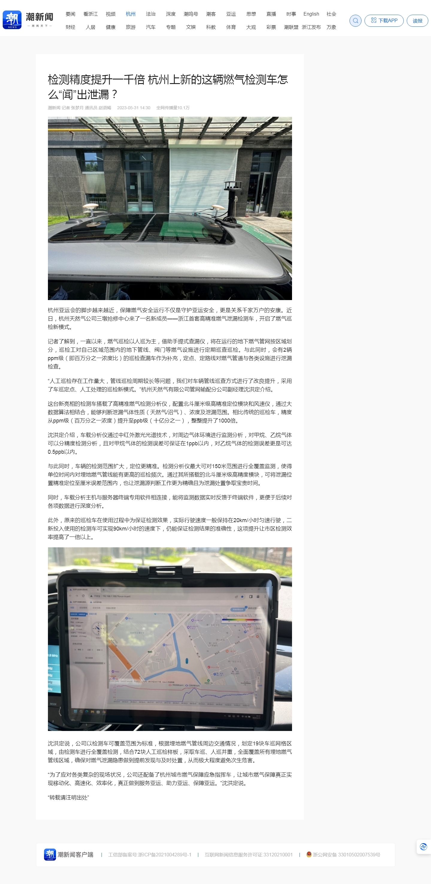 沈洪定说,公司以检测车可覆盖范围为标准,根据埋地燃气管线周边交通情况,划定19块车巡网格区域,由检测车进行全覆盖检测,结合72块人工巡检样板,采取车巡、人巡并重,全面覆盖所有埋地燃气管线区域,确保对燃气泄漏隐患做到提前发现与及时处置,从而极大程度避免次生危害。