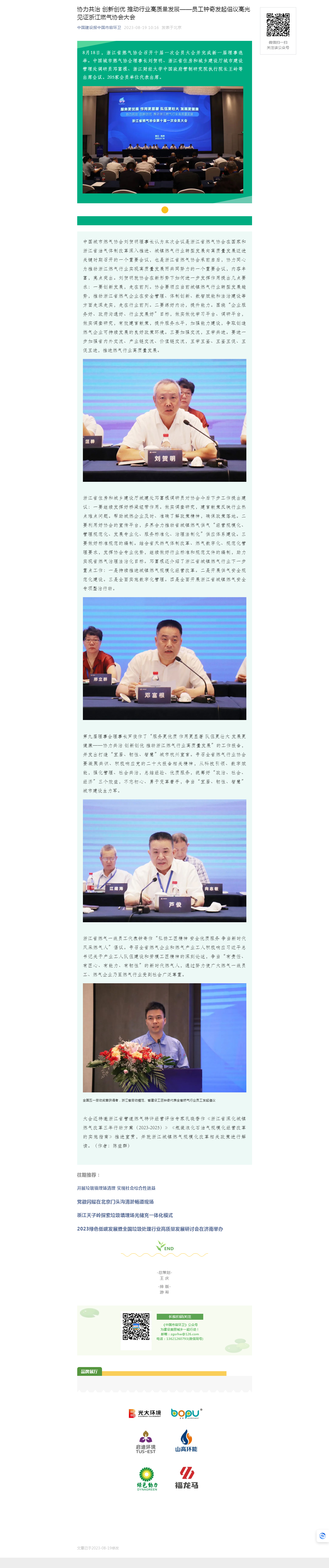 8月18日,浙江省燃气协会召开十届一次会员大会并完成新一届理事选举。中国城市燃气协会理事长刘贺明、浙江省住房和城乡建设厅城市建设管理处调研员邓富根、浙江财经大学中国政府管制研究院执行院长王岭等出席会议。205家会员单位代表出席。